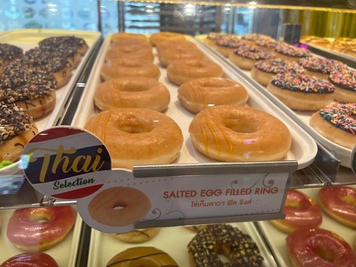 I took this picture at a Krispy Kreme in Bangkok. I was not adventurous enough to try this flavor.