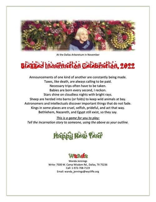 Wanda is a retired Bible Translator for Wycliff that we help take care of some of her needs.