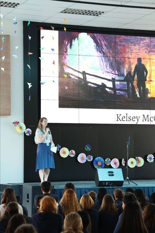 This student shared, "The hand reaching out towards the dove represents the conscious decision we can make to allow God to transform us. Even in the worst of life, God works to create something new and beautiful."