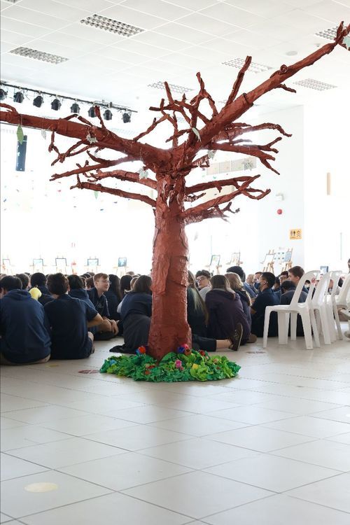 We built a tree and asked students to write prayer requests and praises on leaves and attach them to the tree.