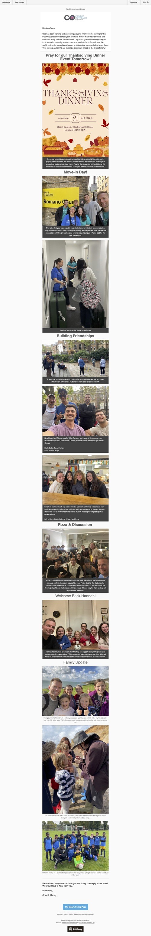 England Missionary Update