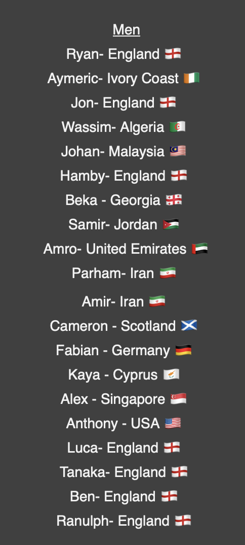 We praise God that we can partner with you in sharing the good news of Jesus Christ! Josh, thank you for the role you are playing in this ministry that God has called us to. Without your help we wouldn't be able to live in one of the most diverse cities in the world with the sole purpose of strengthening the Church by reaching the next generation of leaders through the college campus. Below is a list of students we have been meeting with regularly over the past year. I urge you to join us in praying for their salvation. Each name is followed by the country that student is from. Every day I'm blown away by the breadth of reach we have in the world through the city of London. The world is literally at our doorstep.