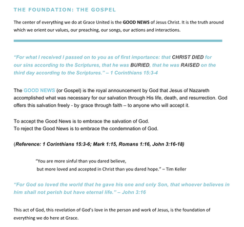 In 2022, two churches – "Grace Church" (a Caucasian church) and "Grace Temple" (an African American Church) – came together to form a new church – appropriately named “Grace United.” This church was birthed from a prayer and is centered around Jesus prayer for unity in John 17.